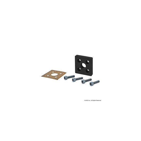 Square Pressure Manifold Feed Plate, Aluminum, Anodized, Overall Height 50 mm, Overall Length 50 mm, Overall Width 11.8 mm, Fastener Thread Size M6, Mounting Hole Diameter 6 mm, Black, Attachment Type Bolt-On, Number of Mounting Holes 5, Includes Fasteners Yes, Includes (4) 13-6525 M6x25 mm Socket Head Cap Screw (SHCS), Gasket, Mounting Hardware, System of Measurement Metric, 25 Series, Compatible Brand and Series 80/20 25 Series, Compatible Manufacturer Model Number 13-6525