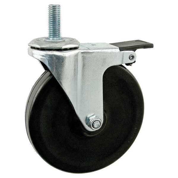 Threaded Stem Swivel Caster, Metric, For Profile Type Single, Wheel Diameter 125 mm, Caster Mounting Type Stem, Includes Brakes Yes, Fastener Thread Size M10, Swivel, Zinc-Plated, Fastener Thread Length 30 mm, Overall Height 168.3 mm, Rubber/Steel, 25 Series, 40 Series, 45 Series, Includes Fasteners Yes, Load Capacity 150 lb, Overall Depth 127 mm, Overall Width 48.76 mm, Fastener Mounting Type Drop-In, Adjustable Yes, Caster Stem Thread Size M10x1.5, Black
