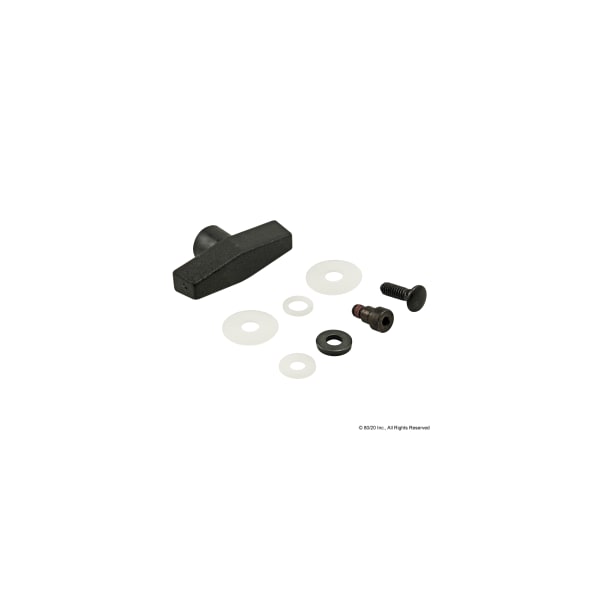 T Handle Kit, 10 Series, Inch, Overall Height 1 61/64 in, Overall Length 2 1/2 in, Overall Width 3/4 in, Steel/Polypropylene, Zinc/Matte, Black, Includes Fasteners Yes, Includes Mounting Hardware, Compatible Brand and Series 80/20, Compatible Manufacturer Model Number 3320-3, 3321-3