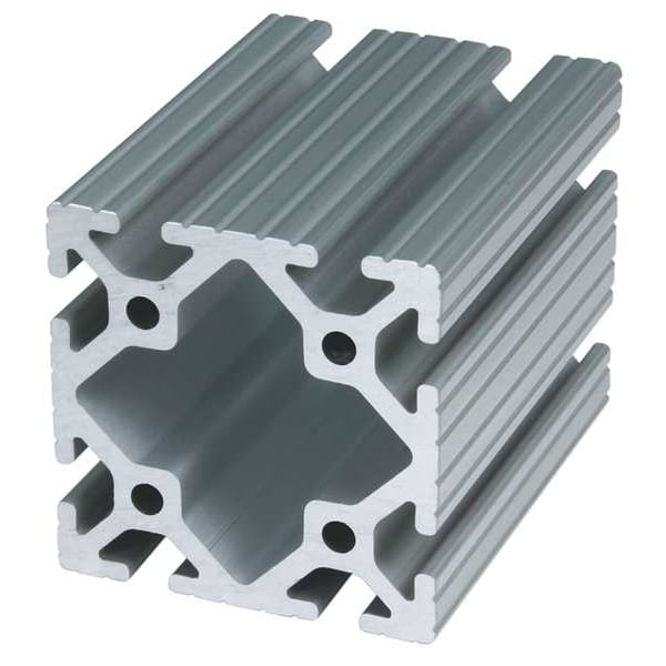 T-Slot Profile, Inch, Quad, Silver, Weight per Unit Length 3.76 lb-ft, Bore Diameter 17/64 in, Extrusion Texture Grooved, Nominal Length 6 ft, Aluminum, Number of Open Slots 8, Profile Height 3 in, Profile Width 3 in, Overall Length 72 in, 15 Series, Square, Slot Width 0.32 in, Yield Strength 35,000 psi, Relative Profile Weight Standard, Slot Location Adjacent-Sides, Finish Anodized, Temper T5