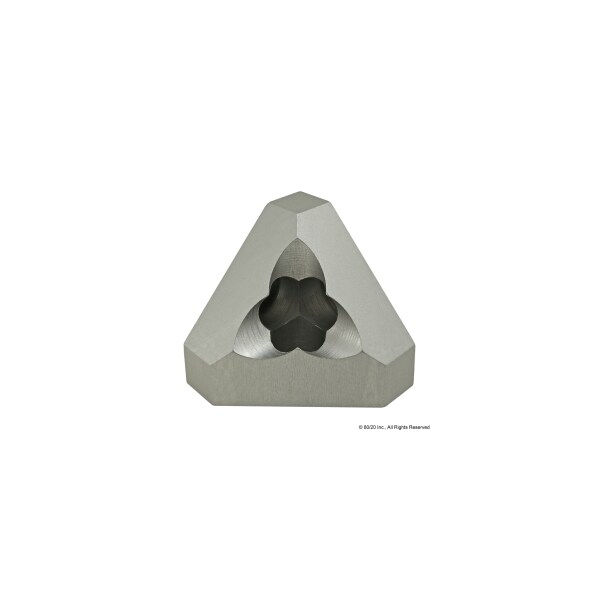 Triangular Corner Connector, Silver, Anodized, Overall Height 40 mm, Threaded, 8.3 mm, Socket Head Cap Screw (SHCS), Overall Width 40 mm, Fastener Thread Length 25 mm, Aluminum, Fastener Thread Size M8, Inside Corner Bracket Style Triangular, System of Measurement Metric, Triangular Corner Connector, For Profile Type Triple