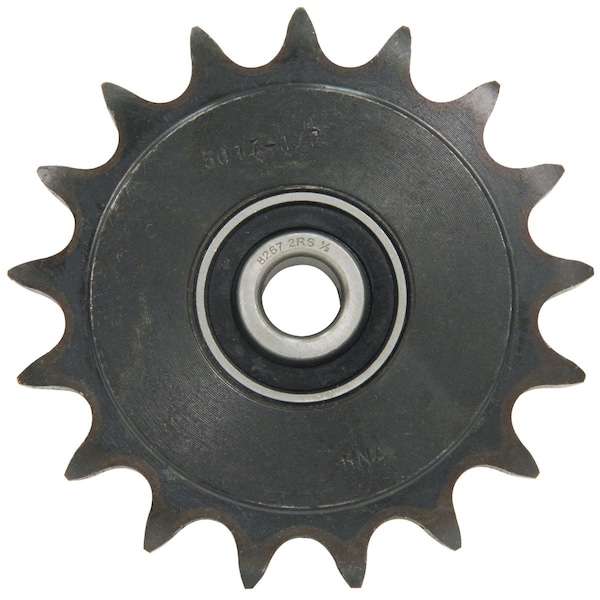 50 IDLER SPROCKET 17T 1/2, Bore: 1/2" Bearing, Chain Size: 50, Dim A (1): 17 Teeth, Dim B (2): .50" bore, Replaces: AH87204, Teeth: 17
