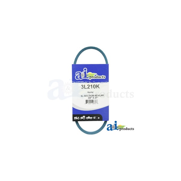Aramid Blue V-Belt (3/8" X 21" ), Color: Blue, Depth: 7/32", Material: Aramid Cord, Notes: 3/8" x 21" 3L-Section Wrapped Aramid Cord, OC Length: 3/8" X 21", Top Width: 3/8", Type: 3L-SECTION WRAPPED BELT