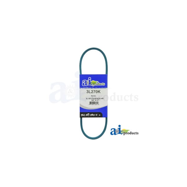 Aramid Blue V-Belt (3/8" X 27" ), Color: Blue, Depth: 7/32", Material: Aramid Cord, OC Length: 3/8" X 27", Top Width: 3/8", Type: 3L-SECTION WRAPPED BELT