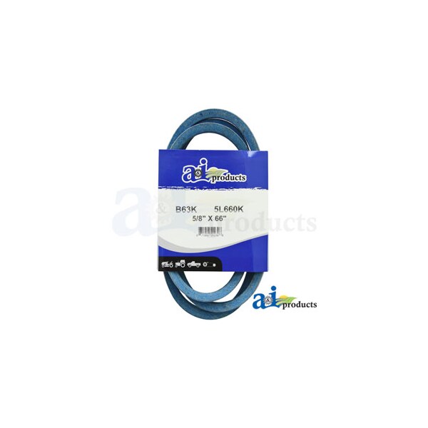 Aramid Blue V-Belt (5/8" X 66" ), Color: Blue, Depth: 13/32", Dim A (1): 5/8" x 66", Material: Aramid Cord, OC Length: 5/8" x 66", Top Width: 5/8", Type: B Section