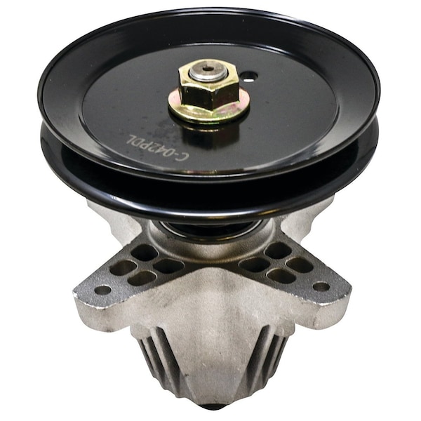 Assembly, Spindle, Notes 2: Fits most 200 and 700 series mowers with 42" deck., Replaces: MTD 918-06991, Pulley Diameter: 5-5/8", Height: 6-7/8", Dim A (1): [Blade Mount] 6 pt. star
