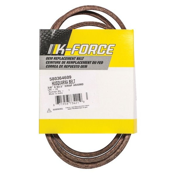 Belt, Drive, Color: Brown, Material: Aramid Cord, Notes: 3/8" x 63.5" Wrapped Aramid Cord, Thickness: .215", Type: Wrapped, Width: 3/8"