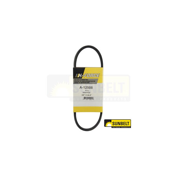 Belt, Drive, Color: Black, Dim A (1): 3/8" x 24.5", Length: 24.5", Material: Polyester Cord, Notes: 3/8" x 24.5" REL (Raw Edge Laminate) Polyester Cord, Thickness: 0.25", Type: REL (Raw Edge Laminate), Width: 3/8"