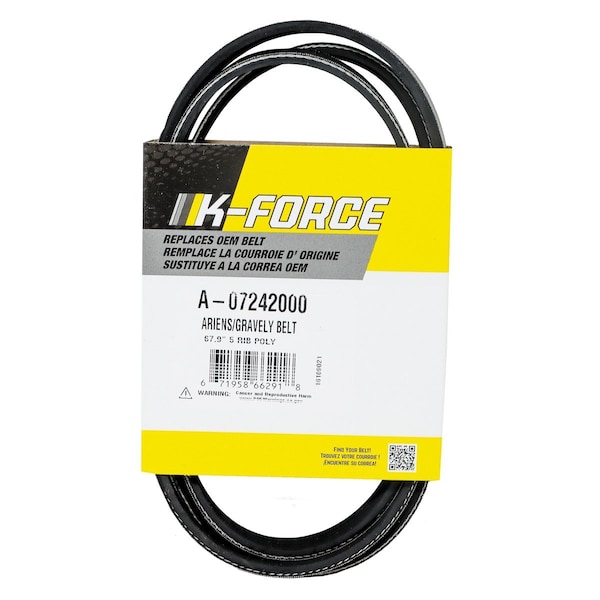 Belt, Transmission, Color: Black, Length: 67.9", Material: Polyester Cord, Notes: 5 Rib x 67.9" K Micro Rib Polyester Cord, Thickness: 0.2", Type: K Micro Rib, Width: 5 RIB