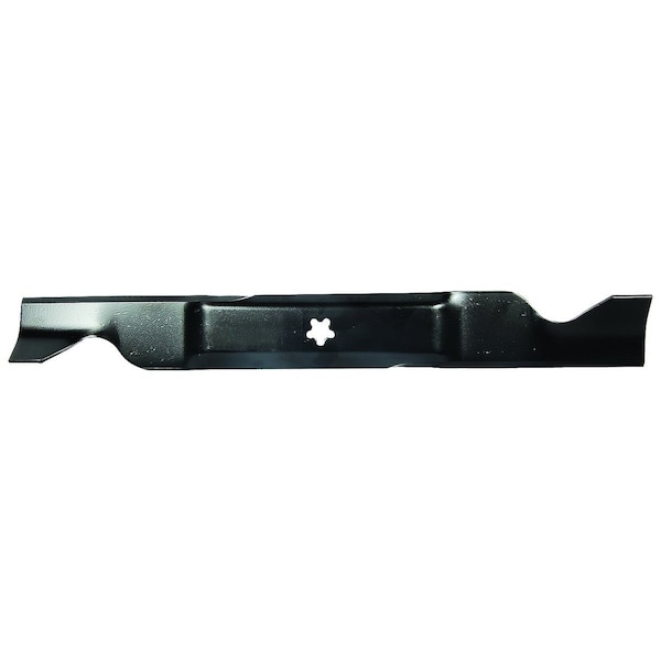 BLADE-MOWER, 22-7/8", 5PT, Type: High Lift - Notched, Center Hole: 5 point star, Width: 2-3/4", Thickness: 0.156, Notes: (2) blades for 46" cut., Length: 22-7/8", Web Notes: Replacement XHT Lawnmower blade. XHT(Xtreme Hardness & Toughness) blades are 25-40% harder than, Web Notes: standard lawnmower blades. Benefits of the HXT blade are sharper and longer lasting cutting edges., Web Notes: More resistance to bending. Tighter tolerances in the aftermarket vs. OEM. XHT blades also offer, Web Notes: greater impact toughness.