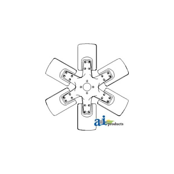 Fan, 6 Blade, Dim A (1): 17.500" Diameter, Dim B (2): 1.625" Pilot Hole, Dim C (3): 1.750" Bolt Hole Centers, Web Notes: the Massey Ferguson Tractor 1085 and 285., Web Notes: New 6 blade fan has a 17.5" diameter, 1.625" pilot hole, and 1.75" bolt hole centers. This fan fits