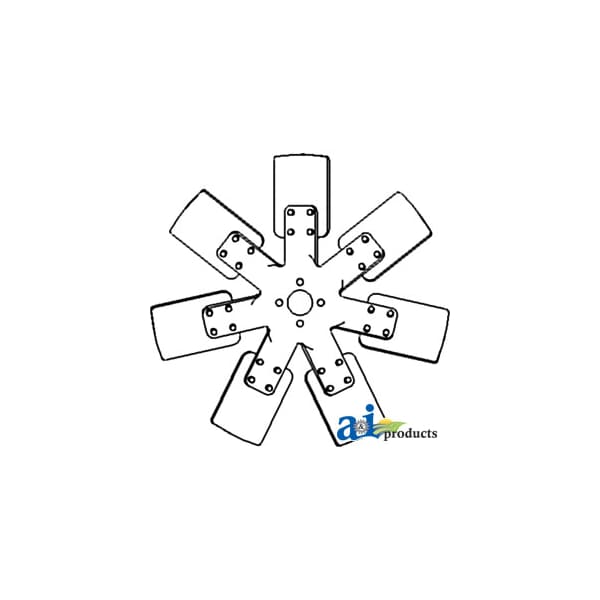 Fan, 7 Blade, Dim A (1): 19" Diameter, Dim B (2): 1 1/2" Pilot Hole, Dim C (3): Mounting Holes On 1 3/4" Centers, Web Notes: fits multiple John Deere Tractor models., Web Notes: New 7 blade fan has a 19" diameter, 1.5" pilot hole, and mounting holes on 1.75" center. This fan