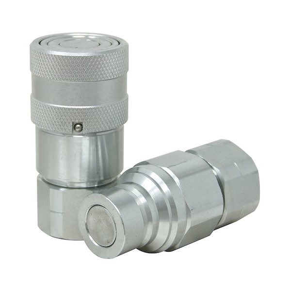 Flat Face Hydraulic Coupler Socket & Plug Set (1/2" NPT) 5" x5" x1"