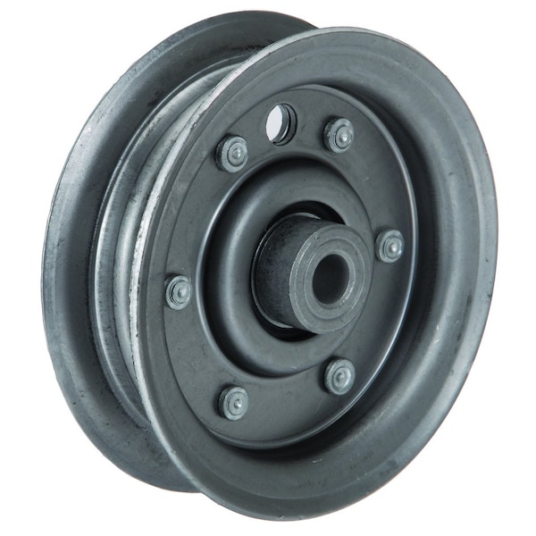 Flat Idler, Outside Diameter: 3.060", Inside Diameter: 3/8", Notes: Flat Idler w/ flanges. Steel. Drive belt and mower deck pulley on for many 12 through 22 HP front, Notes: engine tractors.
