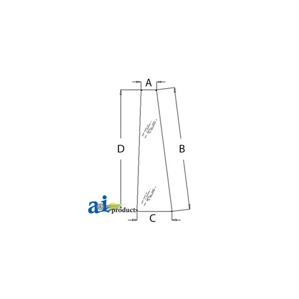 Glass, Door, Front (RH/LH), Dim A (1): 5.25", Dim B (2): 41.00", Dim C (3): 12.00", Dim D (4): 41.50"