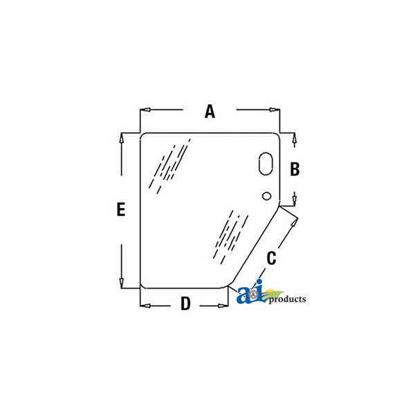 Glass, Door, Lower (LH), Dim A (1): 22.00", Dim B (2): 11.50", Dim C (3): 16.00", Dim D (4): 14.00", Dim E (5): 24.50"