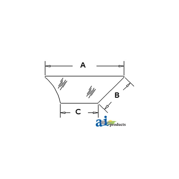 Glass, Door, Lower (LH), Dim A (1): 24.625", Dim B (2): 17.000", Dim C (3): 11.250"
