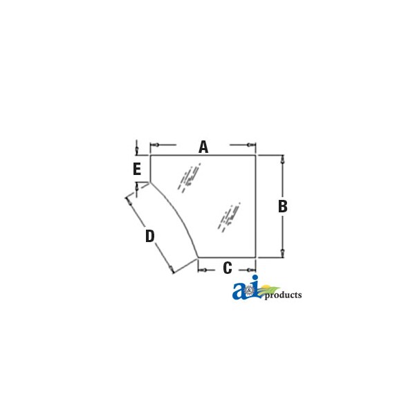 Glass, Door, Lower (LH), Dim A (1): 27.50", Dim B (2): 26.75", Dim C (3): 15.00", Dim D (4): 26.00", Dim E (5): 7.00"
