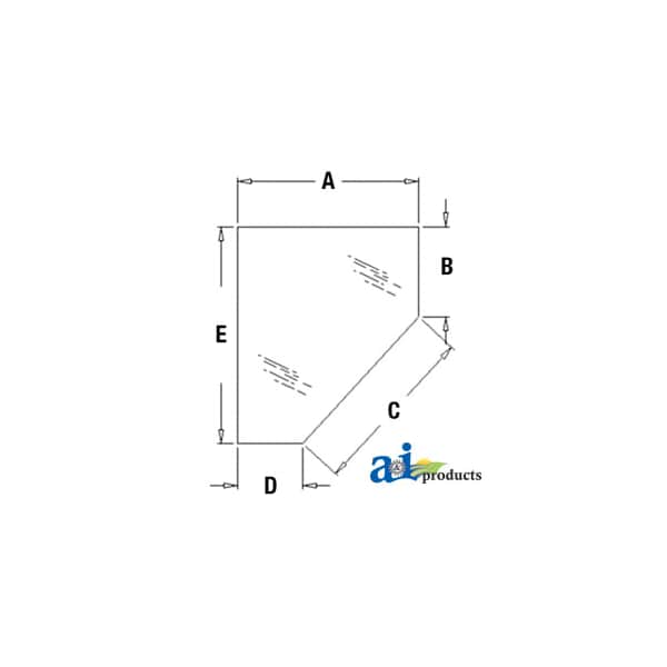 Glass, Door, Lower (RH), Dim A (1): 26.50", Dim B (2): 13.25", Dim C (3): 26.00", Dim D (4): 9.50", Dim E (5): 31.75", Notes: Used on single door cab.