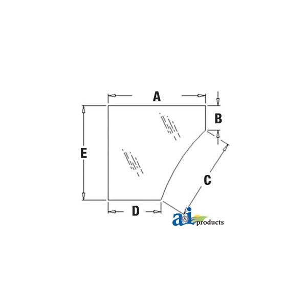 Glass, Door, Lower (RH), Dim A (1): 27.50", Dim B (2): 7.00", Dim C (3): 26.00", Dim D (4): 15.00", Dim E (5): 26.75"