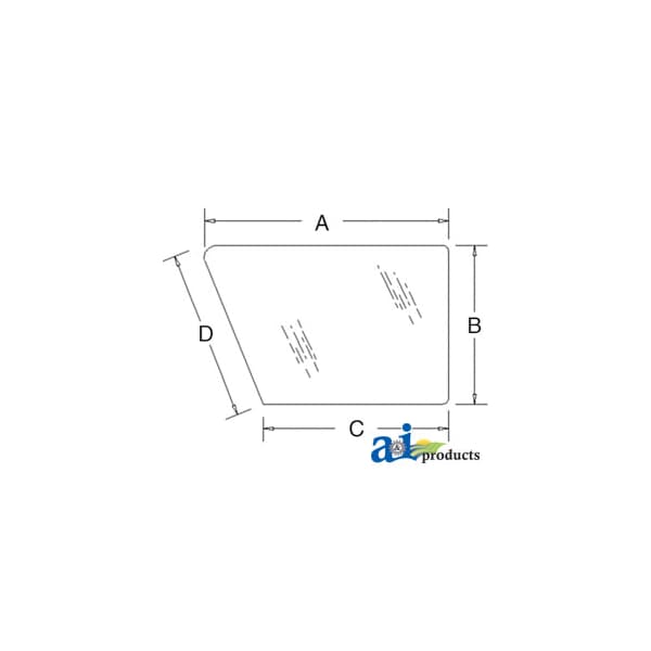 Glass, Door, Lower (RH); Tinted, Dim A (1): 27", Dim B (2): 20", Dim C (3): 15", Dim D (4): 23"