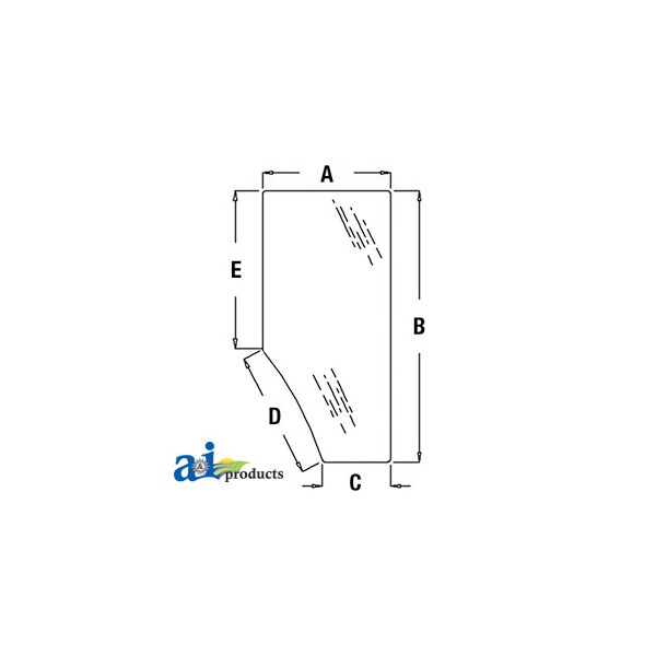Glass, Door (RH), Dim A (1): 26.50", Dim B (2): 56.25", Dim C (3): 14.00", Dim D (4): 27.50", Dim E (5): 33.00"