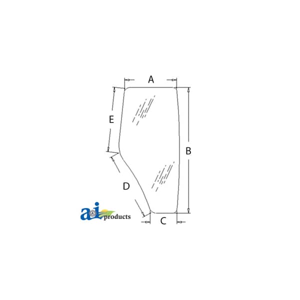 Glass, Door (RH), Dim A (1): 23.50", Dim B (2): 57.00", Dim C (3): 11.50", Dim D (4): 30.50", Dim E (5): 33.00"