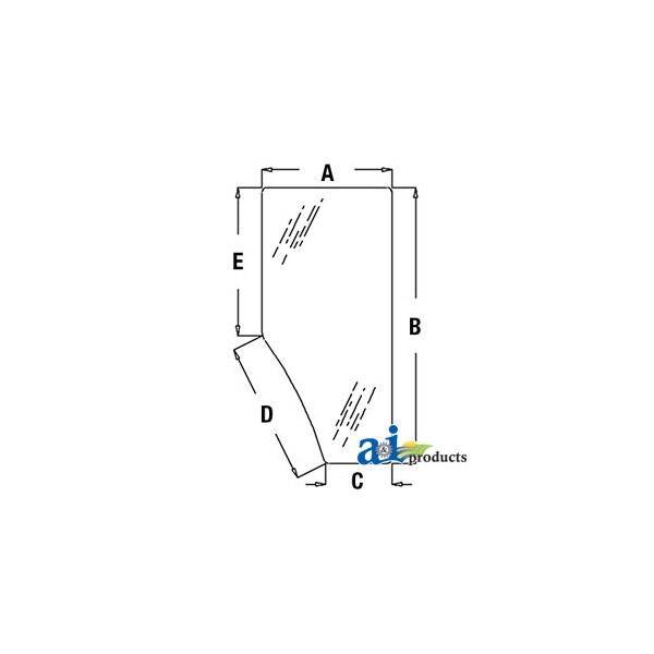 Glass, Door (RH), Dim A (1): 26.50", Dim B (2): 56.25", Dim C (3): 13.50", Dim D (4): 30.00", Dim E (5): 30.25", Length: 56.299", Notes: Newer style OEM hinges may be required when replacing previous number L77648, Replaces: L77648, Thickness: .236", Width: 27.362"