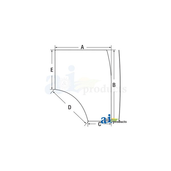 Glass, Door; RH, Dim A (1): 43.125", Dim B (2): 54.75", Dim C (3): 17.9375", Dim D (4): 36", Dim E (5): 30.50"