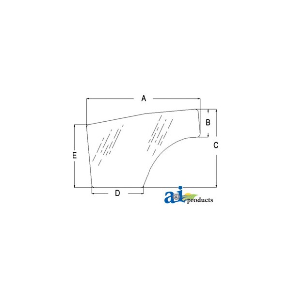 Glass, Door (RH), Dim A (1): 56.25", Dim B (2): 13.69", Dim C (3): 38.75", Dim D (4): 25.75", Dim E (5): 31.00"