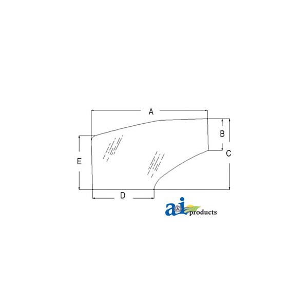 Glass, Door (RH), Dim A (1): 58.25", Dim B (2): 15.875", Dim C (3): 35.6875", Dim D (4): 30.75", Dim E (5): 28.875", Replaces: 865008176, 9824041, 83994237, 89824041, E9NN94030N03BA, E9NN94030N03BB