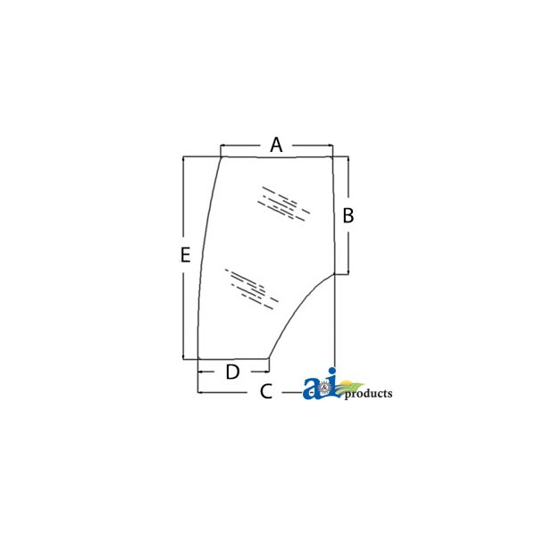 Glass, Door; Tinted, Dim A (1): 32.25", Dim B (2): 33.875", Dim C (3): 39.3125", Dim D (4): 20.4375", Dim E (5): 58.1875"