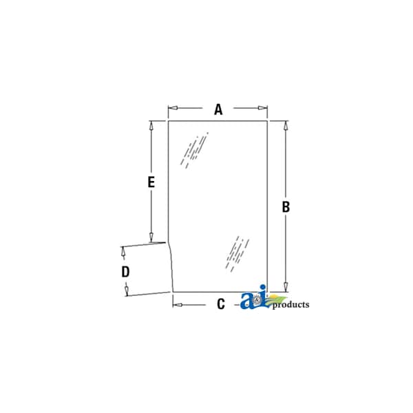 Glass, Door, Upper (LH), Dim A (1): 22.00", Dim B (2): 38.00", Dim C (3): 21.00", Dim D (4): 11.50", Dim E (5): 27.00", Replaces: T70692