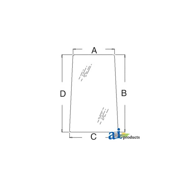 Glass, Front, Lower (LH), Dim A (1): 12.625", Dim B (2): 23.50", Dim C (3): 14.75", Dim D (4): 23.50"