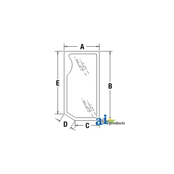 Glass, Front, Lower (LH), Dim A (1): 13.00", Dim B (2): 25.50", Dim C (3): 9.00", Dim D (4): 4.50", Dim E (5): 22.00"