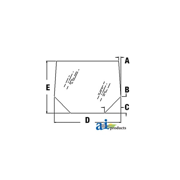 Glass, Rear, Dim A (1): 1.77", Dim B (2): 9.69", Dim C (3): 9.69", Dim D (4): 50.82", Dim E (5): 36.75"