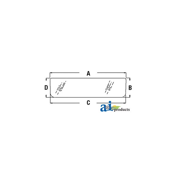 Glass, Rear, Bottom, Dim A (1): 47.50", Dim B (2): 12.25", Dim C (3): 45.50", Dim D (4): 12.25"
