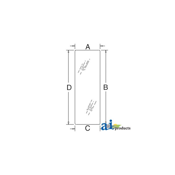 Glass, Rear, Lower, Dim A (1): 10.50", Dim B (2): 31.00", Dim C (3): 10.50", Dim D (4): 31.00"