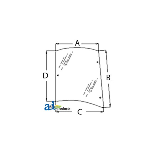 Glass, Rear, Side (RH), Dim A (1): 25.00", Dim B (2): 33.50", Dim C (3): 28.00", Dim D (4): 29.50"