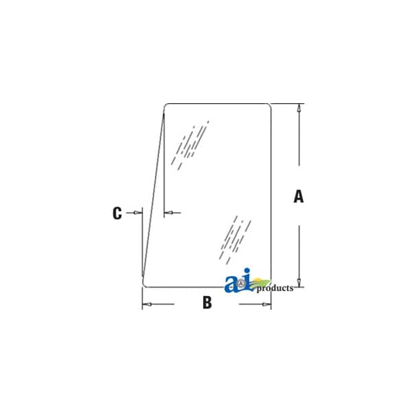 Glass, Rear, Side (RH/H), Dim A (1): 33.87", Dim B (2): 23.66", Dim C (3): 4.39"