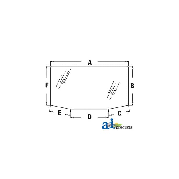 Glass, Rear - Tinted, Dim A (1): 54.25", Dim B (2): 32.25", Dim C (3): 18.00", Dim D (4): 26.00", Dim E (5): 18.00", Dim F (6): 32.25", Notes: Uses RE249465 weather strip seal