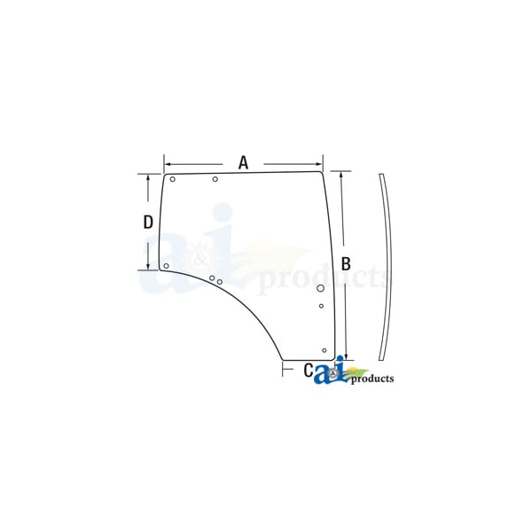 Glass, RH Door; Panorama Version, Dim A (1): 48.43", Dim B (2): 57.09", Dim C (3): 16.54", Dim D (4): 29.53", Replaces: L207691, L209796, Thickness: .32"