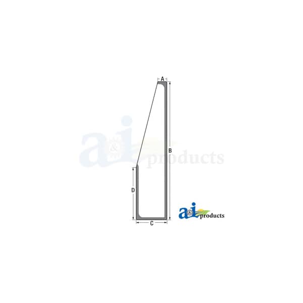 Glass; RH Front, Dim A (1): 4.125", Dim B (2): 62.875", Dim C (3): 14", Dim D (4): 23.75"