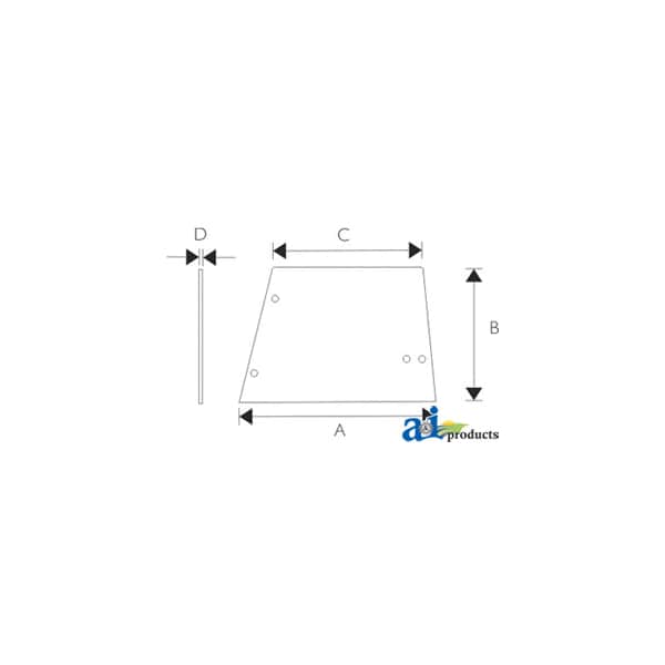 Glass, Side (RH/LH), Dim A (1): 36.00", Dim B (2): 29.50", Dim C (3): 33.00", Dim D (4): 29.50"