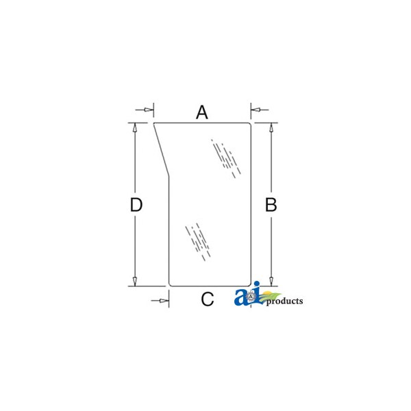 Glass, Windshield, Lower (LH), Dim A (1): 13.75", Dim B (2): 23.00", Dim C (3): 11.50", Dim D (4): 23.00"