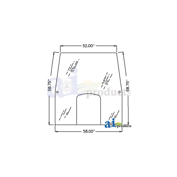 Glass, Windshield - Tinted, Dim A (1): 52.00", Dim B (2): 58.75", Dim C (3): 58.00", Dim D (4): 58.75"
