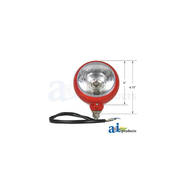 Headlamp Assembly (12 Volt), Dim A (1): 6" Diameter, Dim B (2): Red Enamel Steel Body, Dim C (3): 4 Wires: Black - Ground, Red - Bright, Yellow - Dim, White - Parking, Dim D (4): Not Necessary To Use All Wires If Not Needed. For Basic Work Light Use Black & Red Wires Only.