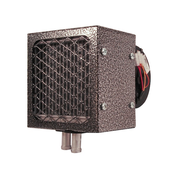 Heater, Fan, Single, Dim A (1): 7.500" X 6.500" X 7.000", Dim B (2): 3 Speed Fan, Dim C (3): Thru Floor Hose Connections, Dim D (4): Steel Case w/ Full Front Grille, Dim E (5): 16,000 BTU
