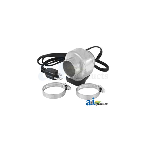 Heater, Radiator Hose, Lower (1 3/4"), Dim A (1): 600 Watt, Dim B (2): Die Cast Aluminum Body, Dim C (3): Heavy Duty 3 Wire Cord, Notes: Do not install on diesel engine w/o by-pass in water pump., Wattage: 600, Web Notes: and heavy duty 3 wire cord. (NOTE: Do not install on diesel engines without by-pass in water pump.), Web Notes: New 600 watt lower radiator hose heater has a 1.75" hose fitting and has a die cast aluminum body
