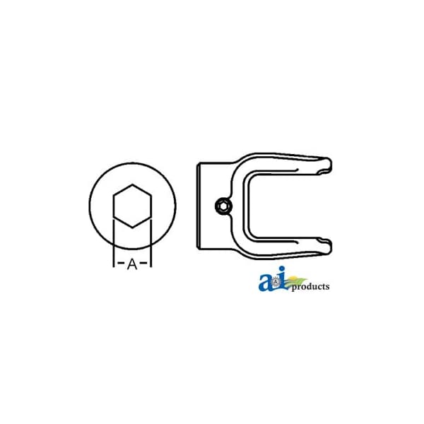 Hexagon Bore Implement Yoke (w/ Set Screw), Bore: 7/8", Dim A (1): 7/8", Notes 3: Original Weasler part., Series: 1000, Web Notes: Implement Yoke with hex bore, 1000 series. Yoke has 7/8" hex bore with set screws.
